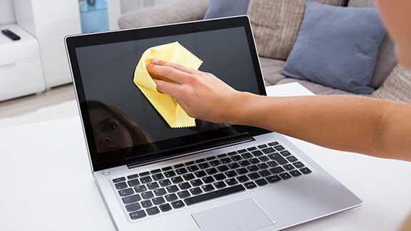 Use a soft, dry microfiber cloth to gently wipe the screen. For more stubborn residues, apply a small amount of alcohol-free screen cleaner to the cloth, not directly on the screen.